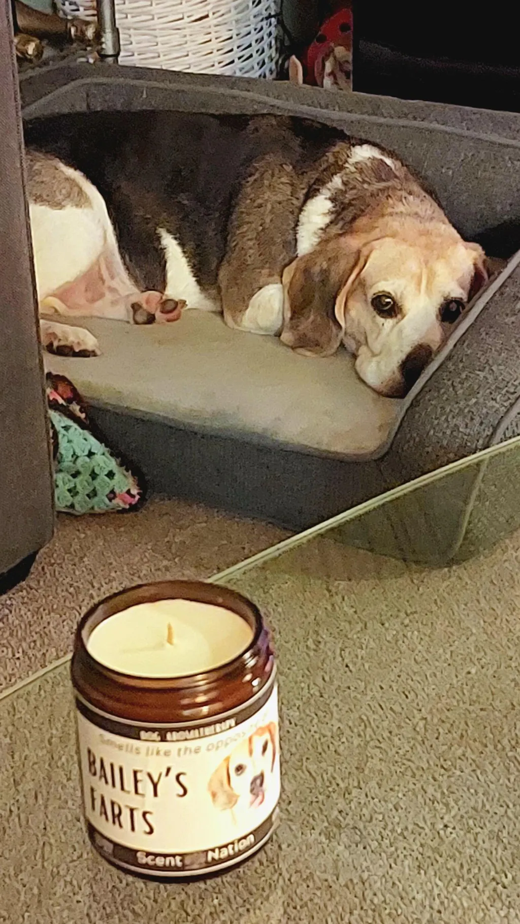 Dog Candle -Custom Dog Fart Candle - Smells like the opposite of "dog name" farts