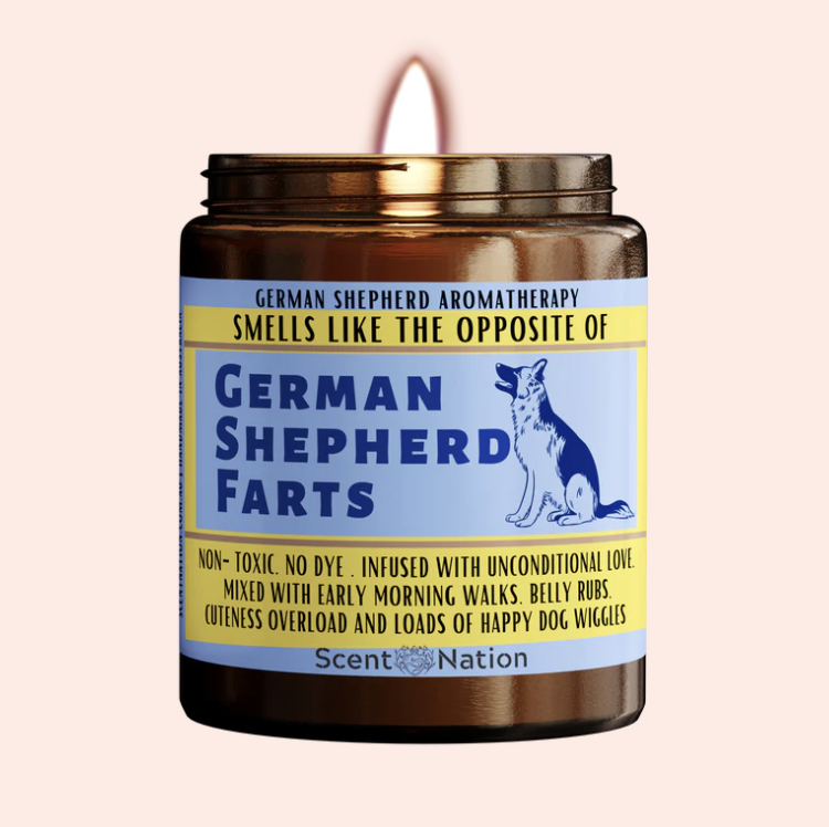 German Shepherd Gifts - Dog Fart Candle: A Unique and Scented Gift for the Ultimate Dog Lover doubles as an ODOUR ELIMINATOR and DOG FART EXTINGUISHER.